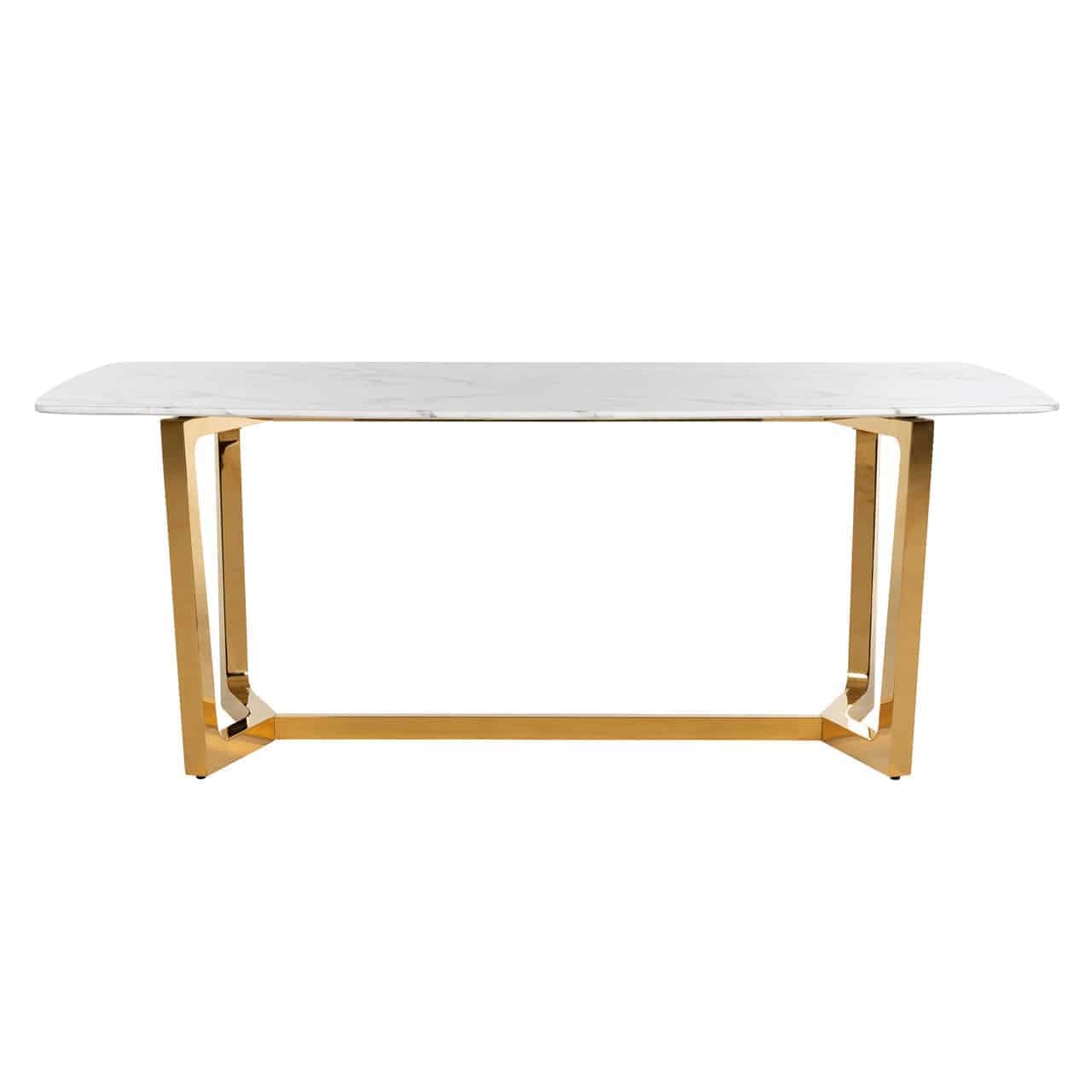 Aan verlanglijst toevoegenRichmond InteriorsEettafel Dynasty 200 (Goud)(0) €1.308,00 Incl. btwArtikelcode: 7234 Op voorraad - 1-5 dagen Toevoegen aan winkelwagenInloggen voor wishlistDirect betalenGratis verzending Vanaf €50,-Vandaag verzonden? Je hebt nog 00 : 00 : 00BeschrijvingDelenEettafel Dynasty 200 is een eyecatcher voor je eethoek. Marmer en goud stralen elegantie uit en geven een ruimte een luxe look. De Dynasty collectie geeft je interieur een chique touch! De eettafel is gemaakt van faux marmer en RVS. Facebook WhatsappToevoegen aan vergelijking